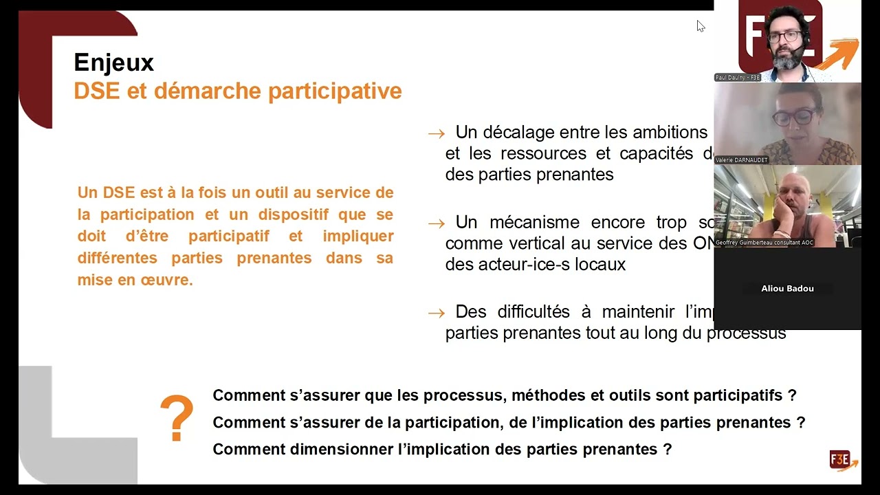 Cette rencontre était consacrée à la participation dans les démarches Suivi, Évaluation, Recevabilité et Apprentissage (SERA).