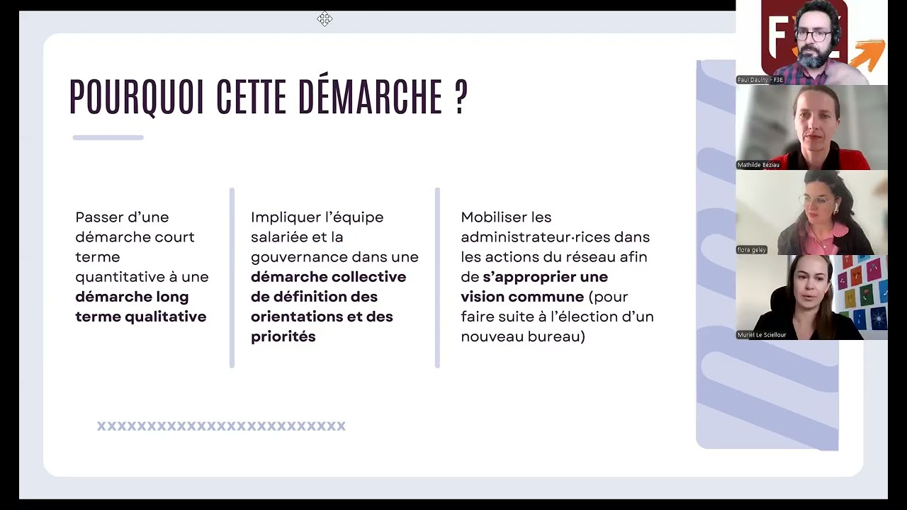 Cette démarche a été accompagnée par le F3E, et appuyée par Laure Criqui et Flora Geley (consultantes).
