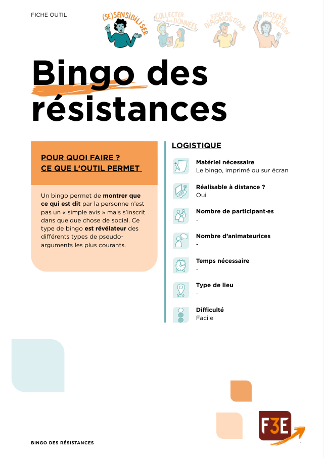 - Sensibiliser aux contre-discours. L’outil peut servir de de support de discussion lors d’une session de sensibilisation. Vous pouvez le partager avec les participant-e-s et les questionner pour analyser ensemble les résistances et construire des réponses collectives aux discours.