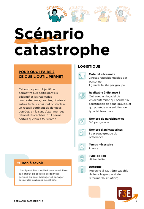 On peut adapter cet exercice de Scénario catastrophe à d’autres sujets autour de la collecte de données, qu’il s’agisse d’une collecte de suivi-évaluation, d’un diagnostic, d’un temps de consultation, etc.