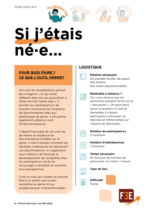 Cet outil de sensibilisation permet de s’imaginer « ce qui serait différent dans ma vie aujourd’hui si j’étais né-e de l’autre sexe ». Il permet aux participant-e-s de prendre conscience de l’existence de discriminations liées aux stéréotypes de genre. Il est parfois également utilisé en outil d’interconnaissance.