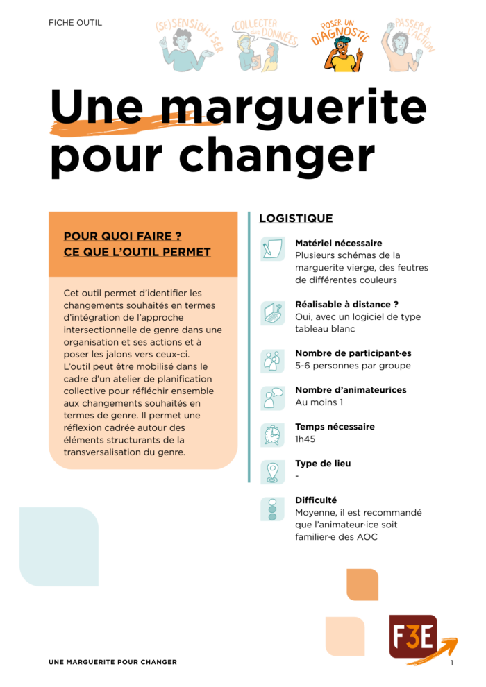Cet outil permet d’identifier les changements souhaités en termes d’intégration de l’approche intersectionnelle de genre dans une organisation et ses actions et à poser les jalons vers ceux-ci. L’outil peut être mobilisé dans le cadre d’un atelier de planification collective pour réfléchir ensemble aux changements souhaités en termes de genre. Il permet une réflexion cadrée autour des éléments structurants de la transversalisation du genre.